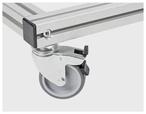 Montiert ist das Förderband auf einem robusten fahrbaren Untergestell aus Aluminiumprofilen.